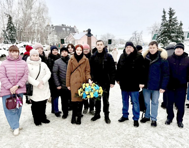 До погруддя Т.Г. Шевченка покладено квіти у знак памʼяті про полеглих захисників, які до останнього боронили цілісність рідної країни.